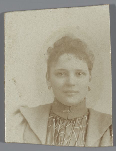This sepia photograph of an unknown woman, by Laurus van Groningen, feels like a quiet moment frozen in time. I’m drawn to how the light gently falls across her face, creating soft shadows that define her features. It’s like the artist was trying to capture not just her likeness, but also a sense of her inner self. The floral pattern of her blouse is so delicate and intricate, you can almost feel the texture of the fabric. Notice the stark contrast with the solid dark band around her neck. Then, behind her, there’s this blurry, dreamlike background that seems to fade into nothingness. It reminds me of those old master paintings where the background is just a suggestion, a whisper of a landscape. I wonder if it was painted or created using darkroom techniques. There's so much tenderness in the portrait, the image feels very intimate. The artist might have been inspired by other portrait photographers of the time, like Julia Margaret Cameron, who also sought to capture the soul of their subjects. But ultimately, this photograph stands on its own as a beautiful, enigmatic piece of art.