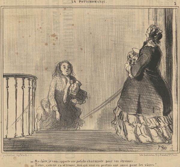 This print by Honoré Daumier presents a seemingly trivial encounter, yet it resonates with broader societal themes. The central motif is the interaction between authority, embodied by the officer, and the hunters returning from their expedition. Notice the officer's exaggerated posture, a visual cue to the social tension between the classes. This harkens back to Commedia dell'arte, where stock characters played out familiar social critiques. The hunters, perhaps bourgeois, appear deflated, contrasting with the authority figure who questions them. The hunt itself is symbolic, a pastime of the privileged classes, and Daumier subtly comments on the futility and pretensions of this pursuit. Such caricatures remind us of the enduring human tendency to create symbols that reflect and critique our social order. This image touches a collective memory, a visual language passed down through generations, continually reshaped by societal changes and individual experiences.