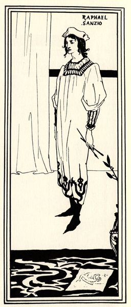 Curator: Oh, my first thought? The tension in the line work. It's positively electric, especially in contrast with that idyllic landscape nestled below. Editor: You’re right; there’s definitely a charged atmosphere! What you're responding to is “The Landslip”, an ink drawing by Aubrey Beardsley. We believe it was crafted during the peak of the Art Nouveau movement. The dynamism of the composition is remarkable, isn't it? Curator: Absolutely. Note the figure clinging to the rock face, looming like some ancient earth spirit. The detail of the troll or beast against the broader valley evokes something almost primordial. The artist uses symbolic shorthand that suggests themes of vulnerability and disruption. Editor: Disruptive, indeed. Beardsley’s association with figures like Oscar Wilde cast him as something of a provocateur during his lifetime, so it makes sense he favors these themes of challenging stability and beauty. Consider how he sets the medieval town against the mountainous peak about to crash down on top of it; a moment of sublime terror that evokes earlier artistic expressions. Curator: That interplay between the sublime and the symbolic makes his work endure. We’re meant to grapple with uncomfortable truths. Editor: The stark black ink further contributes to a sense of immediacy. There are some scholars that theorize a number of other contextual events, public panics in this same time period, in connection to industrial projects. How we navigate this tension between the old and the new becomes something we wrestle with through the art. Curator: It’s like he captured a feeling, or a cultural anxiety and distilled it into this single image. He renders an old legend with a strikingly modern feeling. What a powerful message still today! Editor: Precisely. "The Landslip", even in its stark monochromatic execution, reveals volumes about our continuing struggle with progress and the inevitable chaos of existence. Thank you for shedding light on it.
