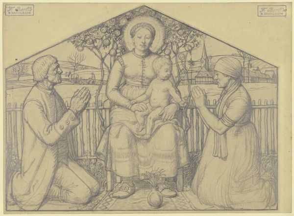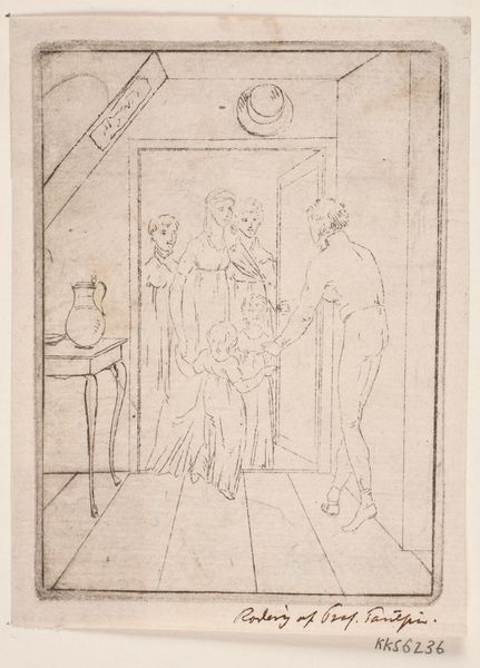 This is Wilhelm Marstrand’s pencil sketch titled "Draft for 'Picture of Everyday Life' (The Suitor's Visit)". Here we observe a suitor visiting a young woman and her chaperone. Note the suitor holding a hat; in art, a hat is a symbol of status and respectability. He is sitting away from the table, indicating his discomfort and the formal nature of the visit. This distance and etiquette are concepts that reach far back. Consider similar scenes in Dutch Golden Age paintings, where courtship rituals were often laden with symbolic gestures and objects. The expectation of marriage and social roles are depicted through subtle visual cues like posture and placement. The unease and anxiety that accompany such encounters are a recurring theme in art. It appears in different forms and eras, highlighting the complex emotional landscape of human relationships. It reminds us of how cultural expectations subtly shape our most intimate moments.