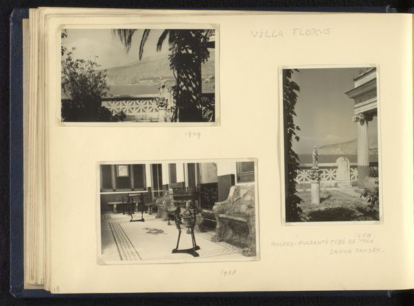 Editor: This photographic print, titled "Three Photos of the Garden of Villa Tritone with the Gulf of Naples in the Background," was taken by Norbert van den Berg between 1938 and 1950. I notice a distinct separation between the meticulously curated garden and the expansive, somewhat wilder seascape beyond. How do you interpret that contrast? Curator: The contrast is crucial. Gardens like this often reflect an impulse to control nature, mirroring social hierarchies and the desire to impose order. The gaze of the photographer and, by extension, the viewer is directed from this cultivated space outward, a possessive act onto the landscape and the cityscapes it holds. What does it mean to frame a place like Naples through the lens of a privileged garden? Editor: So you're saying the garden isn't just a pretty backdrop? Curator: Precisely. Think about who inhabited these villas, who had the means to create such spaces, especially during those years. Consider the political climate and the social disparities. These gardens were not neutral territories; they represented power and exclusion. What stories might the absence of certain people, certain classes, tell? Editor: That's a perspective I hadn't considered. I was just seeing a nice view! Curator: These images invite us to critically examine the historical and social forces at play. Even in ostensibly ‘beautiful’ scenery, we should ask, “Whose beauty is being represented, and at whose expense?” Perhaps it's a starting point for broader questions of land ownership and accessibility. Editor: I guess these aren’t just simple landscapes, they hold so much more. Thank you. Curator: My pleasure. Art gives us that possibility of reflecting on things with more depth.