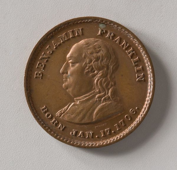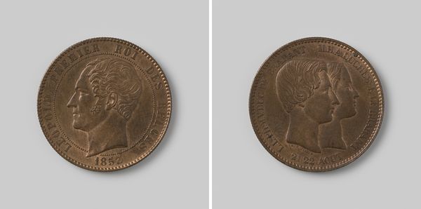 Curator: This is the Jurors' Medal from the Great Exhibition of 1851, crafted by William Wyon in bronze. What's your initial take on this piece? Editor: It strikes me as… severe. A profile portrait is always rather formal, but the bronze lends a particular weightiness. I wonder if the solemnity accurately reflects the mood surrounding the Exhibition. Curator: It’s more complicated than that. The Great Exhibition was intended to showcase British ingenuity, and the aesthetic here projects authority through the classical realism typical of profile imagery. Notice the sharp detail – the crispness of their hair, the line of their noses. The composition places Victoria and Albert close, almost merging, which semiotically suggests a unified British Empire. Editor: That may be true, but it's also important to understand how the royal couple engaged with art. This wasn’t simply a state event; Victoria and Albert very consciously shaped their image through the cultural products of the time. They actively curated their legacy, as we all do. A medal such as this isn’t just about aesthetic authority, it's about the political power that profile imagery has commanded throughout centuries. The Great Exhibition was largely Prince Albert's idea, intended as a moment of immense self-promotion. Curator: Indeed, the choice of bronze, rather than gold or silver, also suggests accessibility. The medal would have circulated relatively widely, reinforcing the visibility of the monarchy to a broader audience. It also represents power. In 1851 bronze would call upon the history of Roman authority, drawing parallels that reinforced British national pride through the medium. Editor: This makes me wonder about its role today. Now, this is housed in the Metropolitan Museum. Its purpose has fundamentally changed. It is not really about propagating authority, it has now become a historical relic that art audiences interpret and analyze as a kind of artwork in and of itself. How do you view it through that modern lens? Curator: It’s interesting you frame it that way. Viewing it now, apart from the social and political forces behind its making, it possesses a compelling structure: the round format containing a carefully organized arrangement of text and figures, balanced with minute precision. This composition is itself worthy of our attention. Editor: Precisely! Considering both perspectives, this medal speaks volumes about a particular moment in history. It shows the monarchy, the country, its relationship to itself. Curator: Indeed, and that complex meaning is cleverly articulated through visual form.