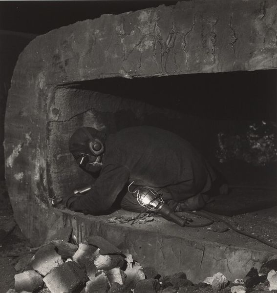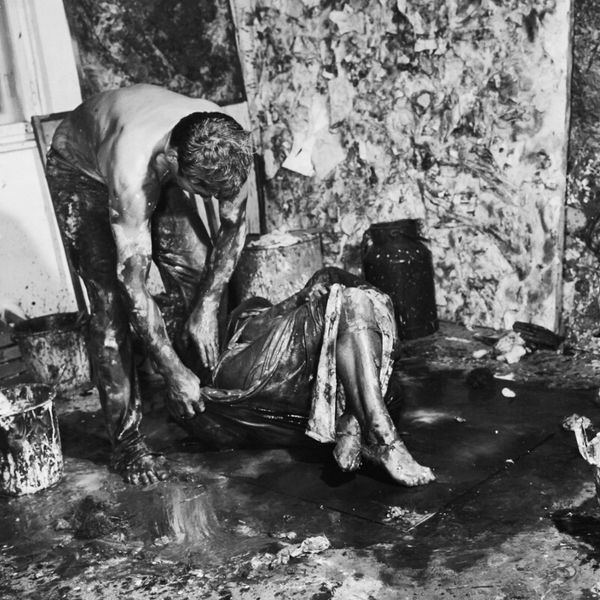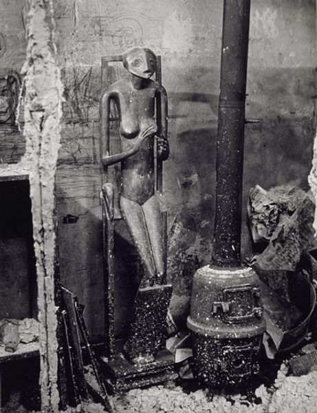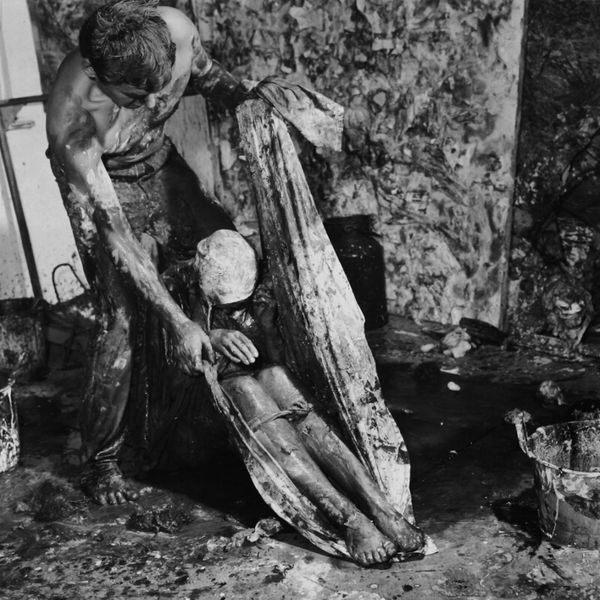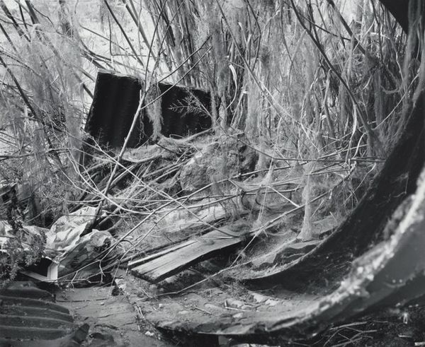 This black and white photograph, simply titled "Toilet," was made by Jim Goldberg sometime after 1953. The scene plunges us right into the thick of it with its stark contrasts and gritty textures. It’s like a painterly study in monochrome. Look at how the light catches the peeling paint and stagnant water. There are so many shades of grey. Goldberg’s really playing with the surface, from the smooth, almost velvety blacks to the rough, granular patches. I'm drawn to the upper left corner, where the wall seems to dissolve into a ghostly landscape. You could get lost in the way the light and dark fight for dominance. This photo feels connected to Robert Frank’s work, but with an even rawer edge. Both artists share this knack for finding beauty, or at least something compelling, in the everyday and overlooked. It's a reminder that art can be found in the most unexpected corners, even in a place as unglamorous as a toilet.