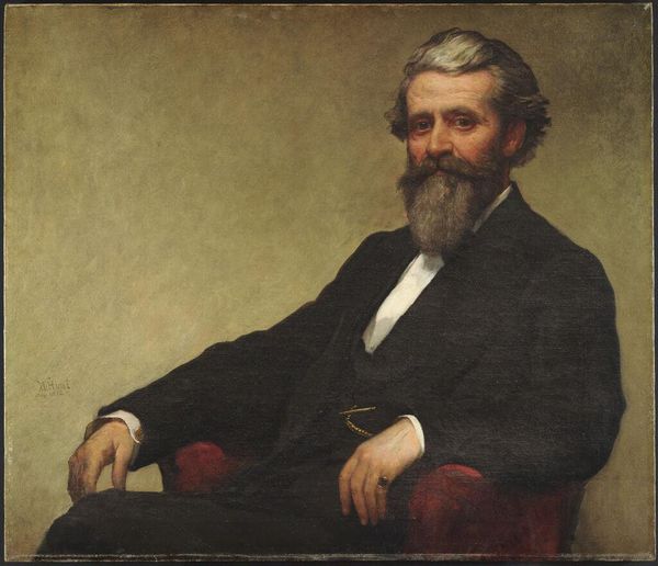 Józef Simmler painted this oil on canvas portrait of Ksawery Skrzyński in Poland sometime in the mid-19th century. In it, Skrzyński embodies the posture of a learned man, respectable and wealthy, but also hinting at the social tensions that would soon erupt across Europe. The portrait presents a man of means, evident in his tailored suit, gold watch chain, and the subtle glint of a ring. Yet, the sitter's gaze is serious, reflecting the political and social currents of the time. Poland, partitioned and under foreign rule, was a hotbed of nationalist sentiment. Simmler, as an artist educated in academies but drawn to historical and patriotic themes, was deeply involved in this environment. To understand this painting better, we would need to delve into the history of Polish society under occupation, the role of the intelligentsia, and the artistic institutions that shaped Simmler's vision. Only then can we fully appreciate this image not just as a portrait, but as a document of its time.