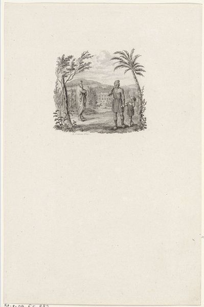 Editor: This engraving from 1808 by Reinier Vinkeles, titled "Europese man in een draagstoel, gedragen door Zuidoost-Aziatische mannen" depicts exactly that. I'm immediately struck by the sharp contrast it creates, it feels almost unsettling in its directness. What do you see in this piece? Curator: For me, this engraving screams of labor, power dynamics, and material disparity. Look closely: The central element, the 'draagstoel,' speaks volumes about colonial structures and how they reshape physical landscapes through unequal human labor. We need to consider the material conditions that enabled this scene to exist – the extraction of resources, the system of enforced labor – which are just as relevant to understand as are questions of artistic intention or aesthetic pleasure. Editor: So, you’re suggesting it’s less about the landscape and more about… exploitation? Curator: Exactly! Focus on the materiality of the image itself—the paper, the ink, the very act of engraving used to produce multiple copies for distribution. These elements participate in circulating and normalizing the scene it represents. Notice how the labor of the Southeast Asian men is abstracted and literally framed by the European gaze. Editor: I see your point. It shifts how I view the picturesque background; it’s no longer just a backdrop but a resource, both visually and materially, extracted for European consumption. Curator: Precisely. What the image makes visible also hides. The process behind producing this scene – forced servitude, extraction of resources – gets sanitized through the supposedly neutral act of documentation. Consider this image as a document detailing a complex interaction of colonial power as enabled through resource consumption. Editor: Wow, I never considered it that way before. I was so focused on the immediate scene. Curator: It is easy to overlook the ways material conditions dictate not only the subject of art but also the methods of its creation and consumption. Thinking critically about materials can unravel layers of meaning embedded in an image that a purely formal reading might miss. Editor: Definitely. I will think differently about it next time!