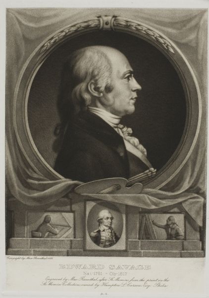 Curator: Here we have Francisco Bayeu y Subias's "Self-Portrait," rendered in oil paint around 1795. What strikes you first? Editor: Well, an immediate sense of quiet self-regard. He’s painted himself looking composed, holding the tools of his trade, with a canvas waiting behind him—though perhaps waiting a little too passively? I get the feeling it is meant to project "master at work", but there's something quite academic about it. Curator: The pose certainly evokes that kind of composed academic authority. I find myself drawn to how Bayeu positions himself in relation to his art and role within a certain cultural context. During that era, artistic expression and self-representation were deeply tied to broader social expectations. Editor: Yes, very tied up with appearances. He's wearing this exquisitely embroidered waistcoat under his professional frock coat, and holding that immaculate palette with only a few daubs of paint—almost unused. There is a real attempt to control how he’s perceived. Curator: Exactly! These choices—the attire, the almost-clean palette, the pose itself—they all coalesce to create an image of a very controlled artistic persona. His self-fashioning is impeccable, presenting a painter not just as a craftsman, but as an intellectual and gentleman. What is very intriguing is the unpainted canvas sitting in the background of the portrait, it could potentially be read in many ways, though mostly pointing towards "to be continued". Editor: Almost as a way to acknowledge a past, perhaps? An artistic lineage, or legacy he hopes to inhabit? He is consciously placing himself in a tradition of portraiture where artists portray themselves not just as laborers but as thinkers, as people worthy of respect. I admire his aspirations for more profound thinking and legacy within his oeuvre, the rest remains silence… Curator: That’s well said. Bayeu’s gaze suggests self-confidence, he believes his ideas deserve recognition, but also maybe with some insecurity as most people will share some similar features on how they view themselves… He's definitely leaving an intentionally designed artifact here for us. Editor: Absolutely. And in the end, he gives us just a glimpse into an artistic mindset shaped by its time. Worth pondering over that.