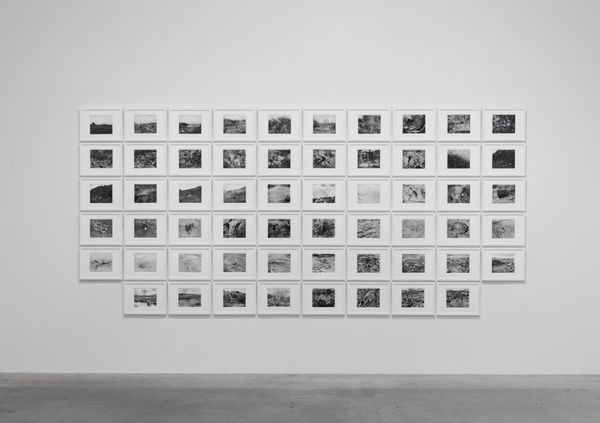 Curator: Looking at Spencer Finch's "Thank You, Fog" from 2009, I'm immediately struck by its contemplative, almost mournful mood. The long line of framed photographs fading into the distance creates a feeling of relentless passing, doesn’t it? Editor: It does. It’s very much a meditation on perception. The uniform framing and the gradual shift in the image draw the eye and mind into a focused state. Finch is fascinated by how we filter and interpret the world. What strikes me here is how this piece isolates a single atmospheric phenomenon. Curator: And how does this artwork tie into Finch’s larger body of work? Because his art often seems concerned with ephemeral experience—moments, fleeting sensations… Editor: Exactly. "Thank You, Fog" is a fine example. The title itself is indicative of a personal gratitude to a specific environmental moment. It also underscores a link to serial and minimalist art, playing with repetition and incremental variation to force careful observation. I wonder, too, about the sociopolitical factors in abstracting and aestheticizing such a thing as "fog" during this particular time in history. After all, who precisely is being thanked in the wake of so much environmental damage, if anyone? Curator: Perhaps it's not only a thank you but also a plea. Looking deeper, one can argue these photographic pieces capture a shared sense of longing for nature, with "fog" emerging as both a literal subject, as well as a symbol of how that contact becomes veiled with nostalgia. Don’t you agree? Editor: It is certainly compelling to read nostalgia and yearning in the repeated images. However, what matters, for me, are questions about the implications of decontextualizing atmospheric phenomena through this process. Perhaps it is an attempt to prompt consideration on our human position as viewers of these ever-present occurrences? Curator: That’s an interesting way to think about it. Maybe Finch’s process serves to pull fog out of the everyday flow of sensory overload and ask viewers to dwell, even if momentarily, in the feeling it evokes. A feeling tied both to individual memory and to the historical context from which our appreciation blooms. Editor: Well, in reflecting on this installation I am reminded how our interaction with art always reveals as much about our own internal landscapes as about what hangs before our eyes. It's a gift, ultimately.