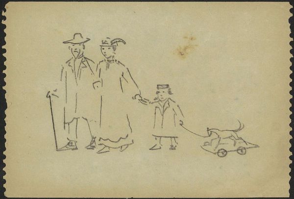 Gerrit Willem Dijsselhof made this study sheet, including figures and a rooster on a barrel, with pencil. Dijsselhof’s marks are understated, even delicate. It feels like he barely touched the paper, preferring to suggest rather than state. It’s as though he’s inviting us into his thought process, showing us the beginnings of an idea rather than a finished piece. I love the way he’s captured the essence of each figure with so few lines; the woman walking her dog, the girl carrying a basket, and the rooster crowing atop the barrel. Each figure is defined by the barest of marks, quickly rendered but full of personality. The birds flocking in the sky and pecking on the ground are particularly charming. This reminds me of the quick sketches of Honoré Daumier or Constantin Guys, artists who sought to capture the fleeting moments of everyday life. Dijsselhof leaves space for our imaginations to wander.