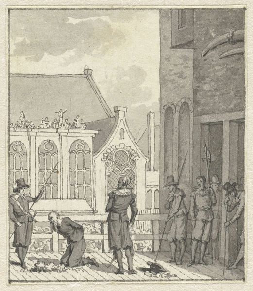 Simon Fokke made this drawing of Hugo de Groot pleading for tolerance before the Amsterdam council chamber in 1716. But it is the 18th century that concerns us here. Fokke was working at a time when the Dutch Republic was reflecting on its golden age. This drawing presents de Groot as an enlightened figure, a champion of tolerance. The setting is rendered with an eye to historical accuracy, note the architecture and the clothing, suggesting a desire to preserve and celebrate the nation's past. But Fokke's decision to depict this event also speaks to the 18th century's own concerns with governance and social harmony. By representing de Groot as an advocate for tolerance, the artist may have been subtly commenting on the social structures of his own time, perhaps critiquing contemporary forms of intolerance or advocating for greater inclusivity within Dutch society. The historian, in interpreting this work, might consult archival records, pamphlets, and other visual materials to understand better the nuances of Dutch political and social discourse during both the early 17th and 18th centuries.