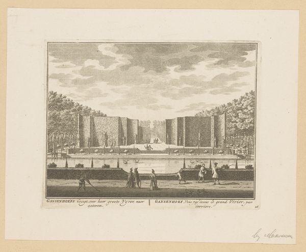 Daniël Stopendaal's etching presents us with a view of the Clingendael estate, dominated by the serene pond and the figure of Apollo. The statue of Apollo is a potent symbol, representing light, reason, and the arts, all central to the Enlightenment ideals of the time. But let us consider the labyrinthine hedges framing the vista. These manicured walls, present also in ancient Roman gardens and recurring throughout Renaissance and Baroque landscapes, evoke a sense of structured control over nature. Yet, they also hint at the potential for disorientation and the subconscious desire to lose oneself within a constructed reality. This tension between order and chaos resonates deeply. Think of the Minotaur's labyrinth, or even contemporary hedge mazes. The motif taps into our collective memory, reminding us of humanity’s ongoing attempt to dominate nature while simultaneously acknowledging its untamable depths. It is this very dance that engages us on a profound psychological level. Like a dreamscape, this image offers the promise of revelation if we follow its winding paths.
