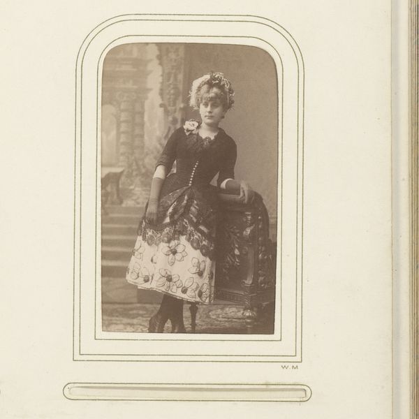 Curator: This gelatin-silver print, titled "Portret van een zittende vrouw met witte klederdrachtmuts"—"Portrait of a Seated Woman with a White Traditional Bonnet"—was captured sometime between 1855 and 1870 by the Sanders Brothers. It’s a rather striking example of genre portraiture from that era. Editor: Somber. It feels heavy. The woman’s expression, combined with the dark tones and almost archaic presentation, casts a spell of quietude, maybe even a little bit of melancholy. It’s like peering into someone's deeply private moment, or even more, someone’s past life. Curator: Yes, it is undeniably intimate. Genre portraiture in this period served various social functions, from documenting social types to memorializing loved ones. This particular work provides us with an insight into how cultural identities were maintained and visualized during a transformative period in European history. Look at how the sitter is styled. Everything about her presentation speaks to specific notions of regional identity, tradition, and class. Editor: The dress and headpiece—it’s such a pronounced visual marker. I imagine the brothers Sanders were very intentional with the detail here, wanting to signal pride in this woman's cultural background through her visual presence. It's a quiet but powerful assertion of identity, wouldn't you agree? You can sense that her roots matter immensely, defining her. Curator: Exactly. And photographs like this would circulate, shaping and reinforcing ideas about "authentic" representations of particular communities. The background even contains an indication of a domestic interior, though, with limited information, there's so much to interpret about this carefully staged tableau. I do wonder, though, who she was and if this commission was her idea, or for others. Editor: Her grasp of the rolled paper— perhaps a letter? Is she literate? Is there meaning encoded there? All we have are subtle suggestions...and it’s there that imagination can bloom, to speculate about her dreams. For me, there's something fundamentally compelling about that quiet resistance to easy narratives—to resist making this image speak beyond what it wishes. It guards her secrets beautifully. Curator: It’s a good reminder that our interpretations are always just that—interpretations—and this photo allows us to consider a person that we might not normally give our time and focus to. Editor: A ghost in a frame. I am so grateful it somehow survived so we can see each other across eras.