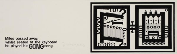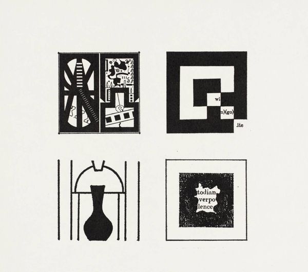 Curator: This is an Untitled work by Richard Pinkney, held in the Tate Collections. Even at a mere 51 x 51 mm, its graphic punch is undeniable. Editor: It feels very mechanical, stark even. Is it a print? The bold black and white contrast gives a strong sense of structure. Curator: The starkness intrigues me. Notice how the segmented forms suggest both construction and fragmentation? It's a visual representation of modernity's promise and potential pitfalls. Editor: I'm more interested in the 'how' than the 'why'. It's clearly a reproduction, leading me to consider what materials the artist used and how that contributes to the final image. Curator: The lack of clear figuration allows for multiple readings, wouldn’t you agree? I see elements of industry combined with hints of the subconscious. Editor: Well, it certainly forces the viewer to consider the materiality of image-making itself. Curator: Absolutely. We're left contemplating the interplay between abstraction and representation, aren't we? Editor: It leaves me thinking about the means of its production and the context surrounding such austere images.