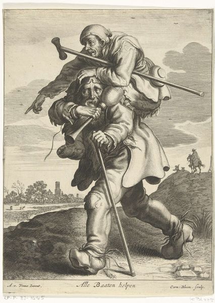 Editor: This is T. W. Freeman’s 1812 print, “The Taking of Major Andr\u00e9 by the Incorruptible Paulding, Williams and Vanvert.” It feels very staged, almost like a theatrical production. What's your read on this work? Curator: We can approach this piece by looking at its material production. It's a print, so it's inherently about reproduction and distribution. Consider the labour involved: the engraver, the printer, and then the consumers of these images. It was made to circulate, and that fact shapes its message. Editor: How so? Curator: Well, think about the title – “the incorruptible.” This isn't just about capturing a historical moment; it's about crafting a specific narrative of virtue tied to these three men. And printmaking allowed for this narrative to spread rapidly. What was the social and political atmosphere that would call for this heroic view of common militiamen, do you think? Editor: I guess, in that case, print makes heroes accessible and, perhaps, inspires more to stand against those who may corrupt them with monetary offers? It’s like propaganda. Curator: Precisely. And it begs the question: whose interests are being served by this easily reproduced image and its circulation? Were there controversies around the event that this image attempts to resolve through visual rhetoric? The image presents itself as a historical record but in reality, serves a purpose. Editor: I see what you mean. The means of production really do shape the message and its reception. Curator: Absolutely. The material conditions, from the paper and ink to the social climate, are crucial to understanding this seemingly straightforward historical scene. Editor: That's a perspective I hadn't fully considered. Thanks, that’s an insightful view.