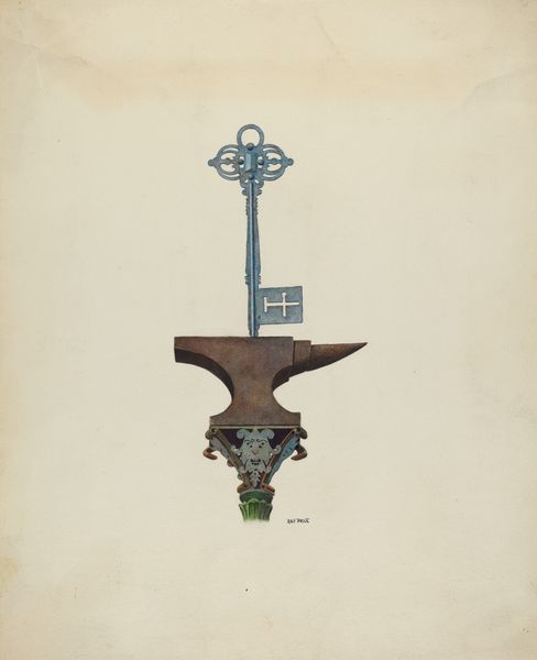 This weather vane was made by Frank Eiseman sometime before 1960, likely from wood and metal. The design is deceptively simple: a horizontal arrow pivoting on a vertical support. But consider the work involved. Eiseman would have needed skill in woodworking to shape the arrow, with its distinctive fletching at one end and arrowhead at the other. The delicate metal framework joining the arrow to the support also suggests careful handwork. Weather vanes are traditionally associated with rural life, connecting people to nature's rhythms. But they are also products of labor, reflecting the skills of the maker. In this case, the clean lines and precise construction hint at the influence of industrial design. Ultimately, Eiseman’s weather vane invites us to look beyond the functional object and appreciate the intersection of craft, design, and the everyday. It reminds us that even the simplest objects can carry layers of meaning, reflecting both the maker's skill and the wider social context.