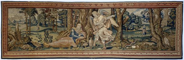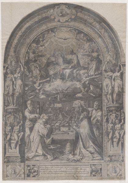 Curator: Looking at this large textile piece titled "Tapestry (Four Servants)," dating back to around 1650, and currently residing here at the Art Institute of Chicago. Jan van Leefdael created it using the intricate process of weaving wool, primarily. Editor: It has a rather stately air about it, wouldn't you agree? The classical architectural motifs, even the somewhat muted tones…it whispers of privilege. But it makes me consider, who are these ‘servants’ exactly, and what’s being served in this tableau? Curator: From a material perspective, consider the labor involved in producing such a tapestry. The wool had to be sourced, processed, spun into thread, dyed, and then meticulously woven on a loom, perhaps by multiple artisans in Leefdael's workshop. It blurs lines: is it a craft object, or fine art? How was the creation divided based on skill? Editor: That’s the question, isn't it? The image depicts women attending to another woman. There’s an immediate class dynamic presented; bodies positioned in service. Yet, in this context, 'servant' carries different implications when converted into commodity. Where they compensated justly for the final price it may demand? Or even afforded rights that may include freedom? It presents social strata that is both veiled and amplified, don’t you think? Curator: Absolutely. Thinking of wool—this textile had a function within a particular societal strata: for display, warmth, asserting the patron’s social standing… What were the trade networks which were active, through which its material traveled to be produced into something that signifies power for others. Editor: I'm captivated by the visual rhetoric and the ways it conceals its sociopolitical aspects, particularly related to the role of women during the Baroque era. I find it deeply fascinating that through depictions such as these that domestic and power relationships were subtly affirmed while being broadcast to society. I'm certain the material production reveals further obscured social details, such as class struggles. Curator: Indeed. From analyzing raw materials and the modes of production, a whole story is unraveled on the value and complexities embedded within a beautiful and deceptively quiet object of functional art. Editor: This tapestry offers just a hint of complexity when we dare question how labor, class, and visibility play into constructing perceptions about both status and agency. The threads themselves are a part of something much grander, in that sense.