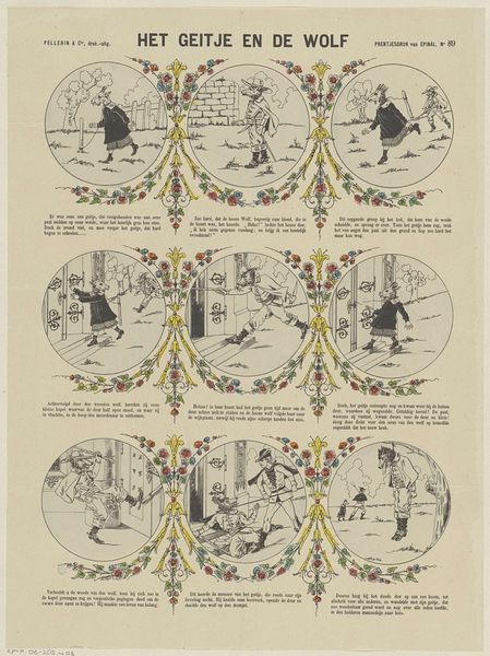 This is "Wensbrief met decoratief kader" (Greeting Card with Decorative Border), made by the widow C. Kok-van Kolm. Note the central motif of tightrope walkers, figures balanced precariously in motion. This iconography reflects more than just circus acrobatics; the act of balancing mirrors life's delicate equilibrium. The tightrope walker, as a symbol, goes far beyond mere entertainment. Think of the Greek goddess Tyche, often depicted standing on a sphere, another representation of balance amidst uncertainty. Such symbols, passed down through history, evolve in meaning but retain a core essence. In the subconscious, the tightrope walker can stir deep emotions. Fear, certainly, but also admiration for skill and courage, engaging the viewer on a visceral level. These visual echoes speak to our shared human experience, resurfacing in diverse forms across cultures and eras.
