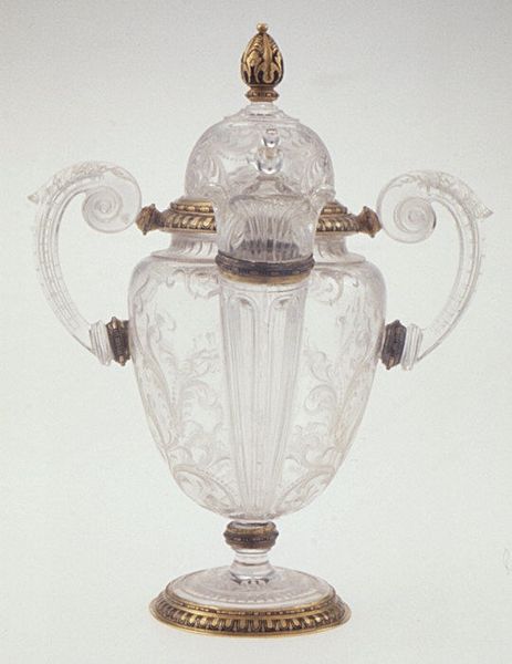 Alfred André crafted this stunning Holy-water stoup from rock crystal, silver gilt, and enamel sometime in the late 19th or early 20th century. André was known for his work in the historicist style, and this piece embodies that sensibility through its intricate design. Consider how the choice of materials elevates a simple vessel for holy water into a symbol of luxury and status. The use of rock crystal, a naturally clear and precious material, reflects a desire for purity and elegance. Silver gilt and enamel were expensive to produce, and they add an element of grandeur, emphasizing the stoup's importance within a religious setting, and also the class of people using it. To truly appreciate André's work, we delve into the social and religious history of France, researching the patronage system that supported artists like him. It is through this wider lens that we can understand the full significance of this seemingly simple, yet deeply symbolic object.
