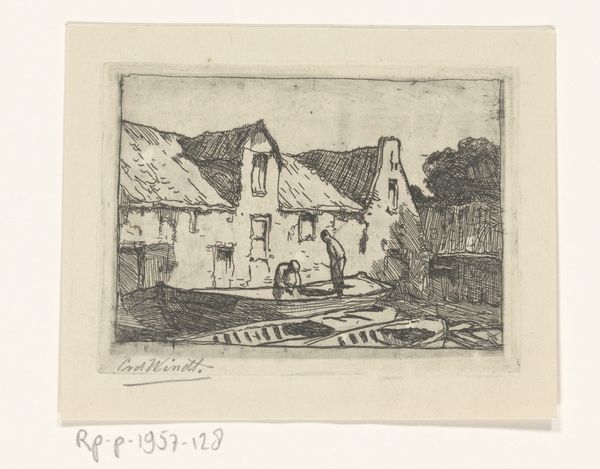 Donald Shaw MacLaughlan made this etching, Luscanen, Brittany, using black ink on paper. MacLaughlan was an American artist, but he traveled widely in Europe, and this image reflects an interest in the landscapes and everyday lives of the people he encountered there. Made in the early 20th century, this etching shows a street scene in rural France. The buildings are traditional stone cottages with thatched roofs. A figure climbs a ladder to the roof, perhaps to make repairs. This quiet scene reflects a moment in time. The artist chose etching because it allowed him to capture the textures and tones of the landscape. The etching medium allowed for the mass production of images, playing a key role in shaping perceptions and cultural exchange between America and Europe. To understand this artwork better, we might research the history of Brittany, the art market and printmaking techniques of the early 20th century. The meaning of art changes depending on social context.