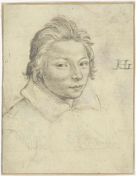 This is a drawing called 'Portret van Christiaen Rodenburg (?)' by Hendrick Goltzius, made with pen in brown and gray on paper. The first thing that strikes you is the use of line. Notice the intricate details of the hair, achieved through delicate, curving lines, versus the broader, more suggestive lines that define the sitter's clothing. This contrast creates a hierarchy, drawing our eye to the face as the focal point of the composition. Goltzius’ technique reflects the artistic milieu of his time, one that balanced naturalistic representation with the stylized conventions of mannerism. The portrait destabilizes the traditional notions of identity. By employing a range of linear techniques, Goltzius invites us to consider the complex interplay between appearance, representation, and perception. It's a work that engages not just with likeness, but with the very idea of image-making itself.