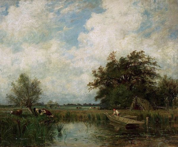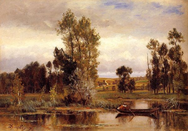 Charles-François Daubigny captured this landscape en plein air with oil on canvas. Daubigny was a key figure in the development of French landscape painting. His direct engagement with nature, working outside the studio, was radical. In the mid-19th century, the French Academy still prized historical and mythological scenes, seen as elevating art above mere representation. Daubigny, and other Barbizon school painters, challenged this hierarchy by focusing on the everyday beauty of the French countryside. His paintings reflect the shift in French society towards valuing rural life and the emerging notion of leisure. The Oise river, a working waterway, here becomes a place of tranquility. The loose brushwork and naturalistic palette evoke a sense of atmosphere. This painting is a rejection of academic conventions and an embrace of the transient beauty of the natural world. To fully understand Daubigny, studying exhibition reviews and the writings of critics like Baudelaire can reveal the stakes of landscape painting at the time.