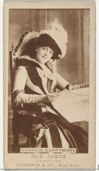 Editor: This is Aimé Dupont's "Portrait of the dancer Cléo de Mérode," a gelatin silver print from 1897. It has a quiet, poised, and romantic feel. How do you interpret this work? Curator: Dupont captures Cléo de Mérode, a celebrated dancer of the Belle Époque. What's fascinating to me is to consider her image within the evolving narratives of female representation and agency. In what ways did performers like Cléo, though celebrated, negotiate the often-contradictory expectations of femininity placed upon them by a patriarchal society? Consider, for example, the way that the burgeoning mass media circulated and commodified women’s images and personas, which simultaneously offered possibilities for economic independence and exposed them to heightened levels of surveillance and objectification. Editor: That's a complex dynamic. The photograph is beautiful, but you're making me wonder about the power structures involved. Curator: Exactly! The performative nature of photography itself contributes to this discussion, too. How does the controlled studio environment, the specific pose, and the artistic choices of the photographer influence how we perceive Cléo as a person versus as a construct, a star? Who really controlled her image? How much of her true self do we see? Editor: So much to consider! It goes way beyond a pretty picture of a dancer. Curator: Absolutely. It encourages a deep questioning of representation, celebrity, and the female gaze. Dupont's work becomes a fascinating site to unpack complex societal norms and struggles for identity and agency. Editor: This has really changed my perspective, urging me to consider not only the visual artistry but also the historical context and the politics of representation embedded within it. Thank you. Curator: My pleasure. Always remember, art history is as much about asking questions as it is about finding answers.
