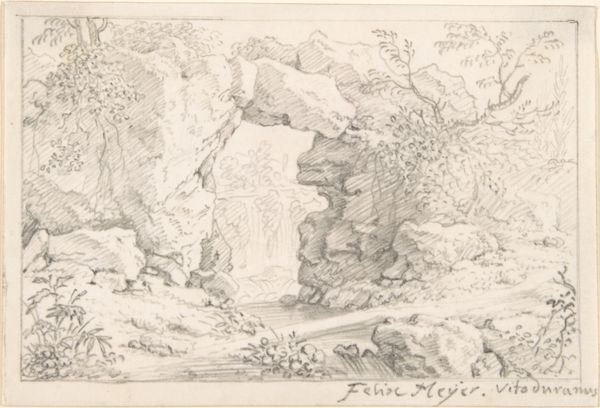 Editor: We’re looking at "Corra Linn, the Falls of the Clyde," a pencil, etching and print drawing made in 1788 by Joseph Farington. It's quite monochromatic, almost ethereal. What captures your attention in this work? Curator: Beyond its obvious picturesque qualities, it's important to situate this landscape within the broader context of its time. What do you see in terms of power dynamics, or even class, when you consider this representation of nature? How does it connect to broader notions of landscape ownership and accessibility during that era? Editor: I hadn’t thought of it that way. It feels untouched, almost sublime, which maybe hides a history of enclosure or displacement. So, how do we view this through a critical lens? Curator: Consider how landscape painting, particularly during the late 18th century, played a role in shaping national identity. Think about whose perspective is centered here. Is it a truly democratic representation, or does it subtly reinforce existing social hierarchies by aestheticizing a space that, in reality, might have been contested or exploited? Are the natural forms presented with sensitivity or as being available for conquest? Editor: That's fascinating! I’d been seeing a beautiful waterfall but missed the possible commentary on land, power, and Romanticism's impact on how we perceive nature itself. Curator: Exactly. It compels us to examine our own perspectives. Thinking about art in terms of not just what we see, but how these representations inform—and perhaps even distort—our understanding of the complex socio-political landscape is crucial. Editor: This makes me want to explore landscape art with a new sense of historical awareness! Thank you for shedding light on that. Curator: It’s a continuous journey, questioning established narratives and expanding our understanding of the interwoven relationship between art, society, and power.