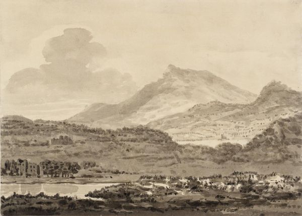 Jan Hulswit created this landscape with pen and brush in brown ink, depicting a river with a herd and mountains in the background. Here, the image of the herd, peacefully coexisting with its herders and the natural world, evokes a sense of pastoral harmony, harking back to classical ideals of Arcadia. This motif—of humanity living in concord with nature—echoes through art history, appearing in bucolic scenes from ancient Roman frescoes to the Renaissance paintings of Giorgione. Yet, there's a tension here. The ruined building in the background whispers of mortality and the transience of human endeavors. Like the classical concept of "Et in Arcadia ego," even in idyllic landscapes, death and decay are present. This duality touches a deep, subconscious chord within us: a reminder of our fleeting existence amidst the enduring power of nature. The image thus becomes a meditation on time, memory, and the cyclical nature of life, death, and rebirth.