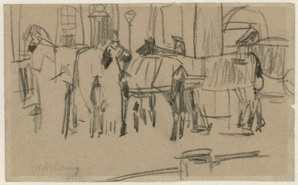George Hendrik Breitner created this sketch, possibly of a hackney carriage, using black chalk. Breitner worked in the Netherlands during a period of rapid urbanization and social change in the late 19th and early 20th centuries. This drawing seems to capture a fleeting moment of urban life. Look closely at the sparse lines and the sketch-like quality, which create a sense of immediacy. The subject is not idealized, but instead, presents a slice of everyday reality: the kind of public transportation available at the time. Breitner was known for his interest in portraying the working class and the urban environment, often challenging the traditional subjects of art. By studying photographs, newspapers, and other visual materials from the time, one can understand how Breitner's work reflected and commented on the social conditions of his time.