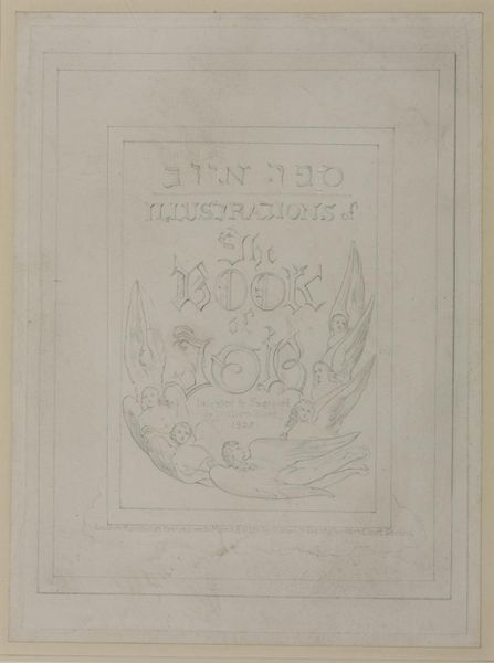 Editor: This is William Blake's pencil sketch, "Sketch for the Title-Page of the Engraved Illustrations to the Book of Job," from around 1823 to 1826. It feels incredibly delicate, almost ethereal, and the line work is just so subtle. What do you make of this piece? Curator: Delicate is the perfect word! It's as though Blake is inviting us into his imaginative process. I see a whirlwind of emotions – faith, despair, and ultimately, hope, all swirling around the central theme of the Book of Job. The winged figures embracing the title hint at divine intervention, don't they? Editor: They do, but they also seem a bit… tormented? Like even the divine beings are wrestling with Job’s suffering. Curator: Precisely! Blake wasn’t one for simple piety. He grappled with the complexities of faith and the problem of suffering. He's questioning, just as Job did, the very nature of divine justice. Does the fragility of the pencil lines reflect this uncertainty, perhaps? Editor: That's a fascinating thought. I was focused on the aesthetics, but now I see the doubt etched into every line. Curator: Art, after all, isn’t just about pretty pictures, is it? Blake’s sketch, though seemingly simple, acts as a portal into a profound spiritual and emotional journey. Editor: Definitely changes my perspective. It’s much more than just a preliminary sketch. Curator: Absolutely. It’s a testament to Blake's visionary genius, offering a glimpse into his mind as he wrestled with these timeless questions.