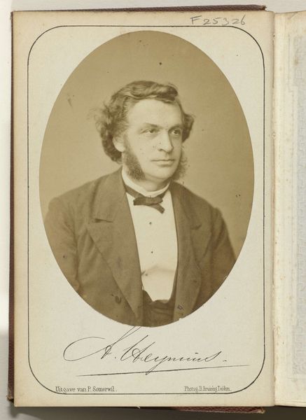 Curator: Let's consider this portrait of George Bradford Chadwick, captured in Boston by John Adams Whipple. It’s a remarkable example of early photographic portraiture. Editor: The first impression is striking; the oval vignette focuses you instantly on his eyes. There’s a somber quality, yet also a fierce intelligence radiating from them. Curator: The photograph’s formal composition, especially the subdued tonal range, reinforces a sense of Victorian-era decorum. Note how the details of the bow tie add a textural contrast. Editor: He looks almost haunting, trapped in a time capsule. I wonder what he would have thought of seeing himself in this form so many years later. Curator: Indeed, the image encapsulates not only a likeness but also a tangible connection to the past, rendered through the lens of early photographic technology. Editor: It makes you pause, doesn’t it? A brief encounter with a life lived long ago, all thanks to light and chemistry.