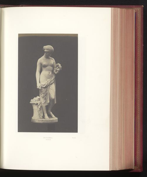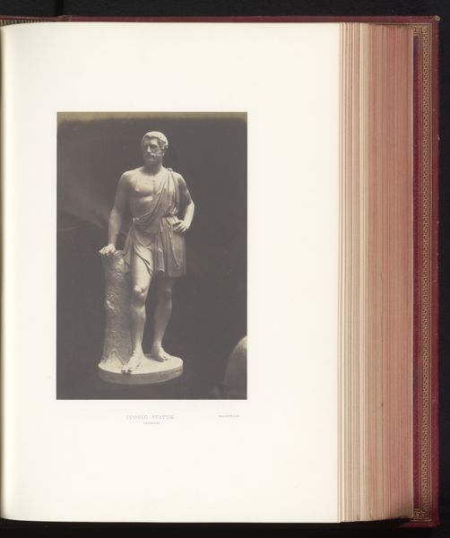 Curator: Well, look at this striking image. This daguerreotype captures Innocenzo Fraccaroli’s sculpture of David, which was exhibited at the Great Exhibition in London, 1851. Editor: He's tense, isn’t he? Not relaxed, almost caught mid-stride. It makes me think he's in between the act of choosing or completing some task, a kind of unresolved moment before or after something decisive. Curator: Fraccaroli certainly captures David at a very specific moment, especially considering the broader legacy of the biblical David, in artistic representation. What is striking is this photograph's ability to convey the texture and form of the marble – how rare to have this preserved through early photography. Editor: Seeing it in this form is quite telling—how even photographs can be turned into icons or objects of fascination, where the content becomes less about the subject matter and more about what's contained within that initial symbolic gesture that inspired that action. A portrait that is more concerned with making you feel like you are David, not looking at him. Curator: I completely agree. The icon of David embodies courage, faith, and, yes, a certain degree of divinely ordained destiny, but the daguerrotype gives it almost an ephemeral weight, since they're all lost. But also in art like this is where a sculpture becomes a memento of something seen and lost. Editor: What truly stays with me is the almost mournful lighting of this image. How even the act of displaying this image creates and reinforces a deep-seated understanding of seeing your reflection, as a man of action. This really becomes a marker of change that remains etched into one's consciousness. Curator: Yes, well put, this single daguerreotype allows us a modern perspective, connecting us across time not only to a moment in art history but a moment of cultural ambition and pride displayed by the Great Exhibition. Editor: Absolutely. What seems simple hides much larger themes: identity, aspiration, loss – they're all interwoven, giving it depth. It's a bit eerie and enchanting.