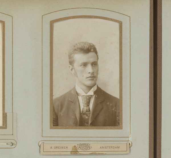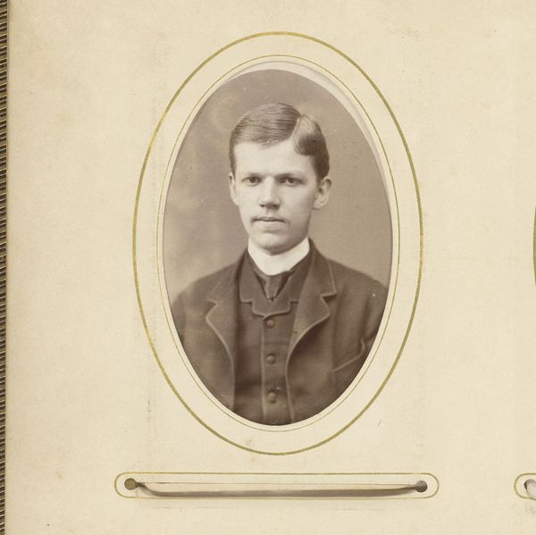This photographic portrait of a young man was made by Albert Greiner, though the specific date is unknown. It’s a small work, about 8 by 5 centimeters. The photograph is mounted onto card, which has been elaborately printed with borders to make it into a keepsake. Photography in the 19th century was a labor-intensive and chemically complex process, involving considerable skill on the part of the photographer. As a result, these images were precious objects. The use of card elevates the photographic image itself. The borders, embossed with lines, create a sense of value that speaks to the rise of photography as a social practice, and its inextricable ties to the industrial revolution. In understanding this photograph, we might reflect on the material support of the image itself, and the wider social context of labor, politics, and consumption. This is a far cry from traditional artistic practices, yet no less important as a cultural artifact.