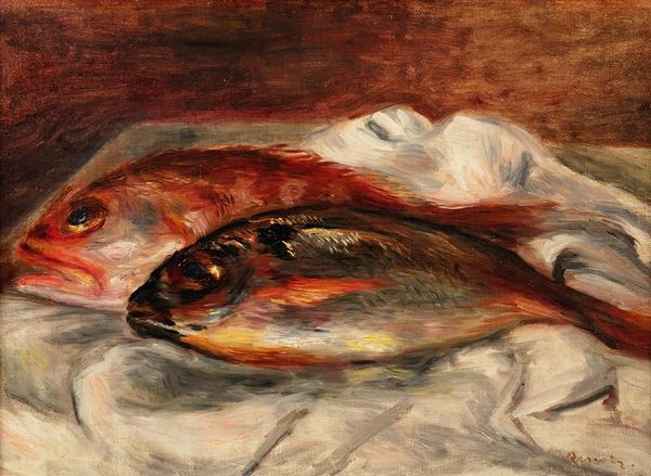 Emil Carlsen painted this still life of haddock using oil on canvas. The scumbled surface shows the materiality of the paint itself, with visible brushstrokes that capture the texture of the fish scales and the reflective glaze of the ceramic plate. The painting process elevates these ordinary objects, endowing them with a quiet dignity. Carlsen was an expert in rendering light and shadow, which is evident in the way he captures the subtle gradations of color on the fish. The handling of paint is particularly masterful. Notice how he achieves a sense of depth and volume with just a few strokes. The painting reflects the rise of consumer culture at the time, as mass production made objects like these ceramic plates more widely available. By highlighting the beauty of everyday objects, Carlsen challenges traditional hierarchies of art and craft.