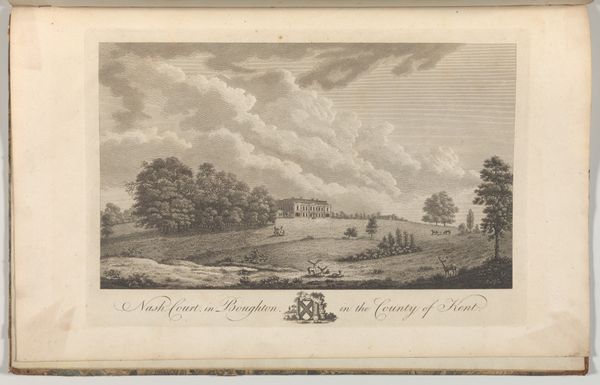 Richard Bernard Godfrey created this engraving, "Tunbridge Castle in the County of Kent," as part of Edward Hasted's "The History and Topographical Survey of the County of Kent." The composition balances topographical accuracy with aesthetic arrangement. Godfrey employs a structured approach, dividing the scene into distinct horizontal layers. Note how the foreground features grazing cattle and resting figures, establishing a sense of scale and daily life. The middle ground consists of fields enclosed by low stone walls which lead the eye toward the castle. This placement creates depth and perspective, inviting the viewer into the scene. Godfrey's treatment of light and shadow defines forms and textures. The engraving technique, with its precise lines and cross-hatching, creates a sense of detail and realism, yet the scene maintains an idealized quality. The orderly composition invites a reading of the landscape as a projection of social order and control. Yet, the subtleties of light and texture remind us of the nuanced interplay between nature and culture.