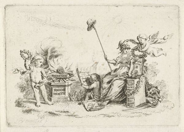 This etching shows a woman playing a guitar in a landscape, and was made by an anonymous artist. In the Dutch Golden Age, music was deeply embedded in social life. The popularity of musical imagery during this period also reveals the increasing importance of leisure and the rise of a consumer culture. This simple domestic scene presents a woman playing a guitar, the instrument itself speaking to her social standing and wealth. Music education for women from wealthy backgrounds was popular in the Netherlands. While the artist’s identity remains unknown, the print itself speaks volumes about the cultural values of the time. Prints like these were sold in bookshops or from market stalls, appealing to a broad spectrum of the Dutch population. To truly understand the artwork, one would research Dutch Golden Age society, the history of music education, and the economic conditions that supported the production and consumption of art. This etching isn’t just an image; it’s a window into a world of social norms and cultural values.