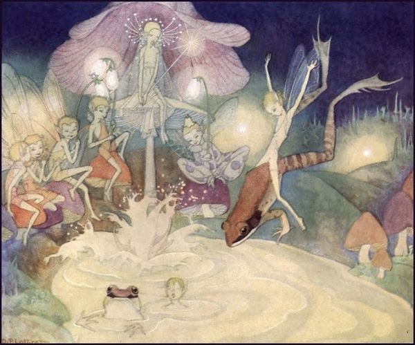 Editor: Here we have "Morning Song" by Michael Parkes, an acrylic painting that looks like fantasy art, with a landscape theme. I’m really struck by how serene and ethereal this feels; almost dreamlike with the mermaids and the blindfolded musician. How do you interpret this work? Curator: That feeling of serenity is a good starting point. The imagery blends mythology with what appears to be a critique of perception and societal roles. The blindfolded figure playing music next to a heron…what does that say about who gets to create beauty, and who or what inspires it? Editor: That’s interesting, I hadn't considered the heron's presence. I just saw it as part of the scenery. Curator: Consider also the mermaids. Are they simply objects of beauty, passively receiving the song? Are they representative of silenced voices, their power limited by their representation? Are we seeing an exploration of the female form that intersects with art history and gender theory? Editor: So you see the figures in a wider social and historical context, instead of just mythical characters? Curator: Absolutely. Parkes’ art often explores metaphysical themes, but it's crucial to examine how these themes are expressed through the visual language he employs and how that language reflects power dynamics. Who gets seen? Who is doing the seeing, and how are they limited by their position? How might their limitations inspire others? Editor: I see what you mean. It makes me think about who gets to be an artist, or muse, and why. Thank you for making me look deeper into the work! Curator: Likewise! Looking at a piece like this really emphasizes the critical importance of viewing art as reflective and expressive of complex social realities.