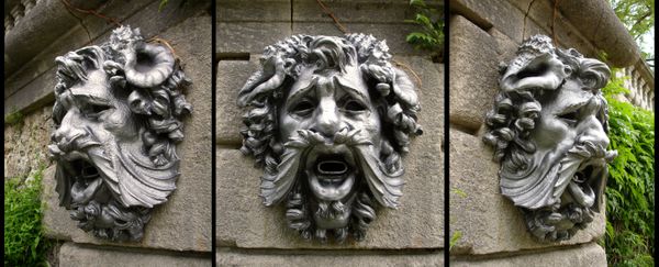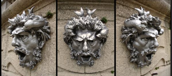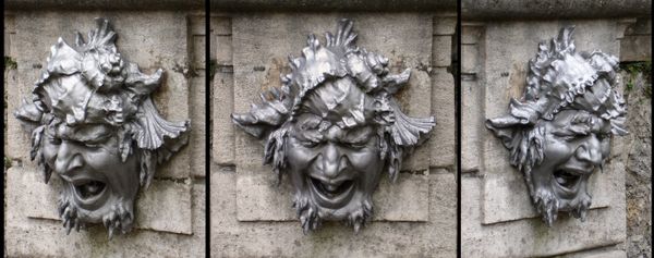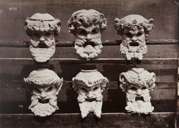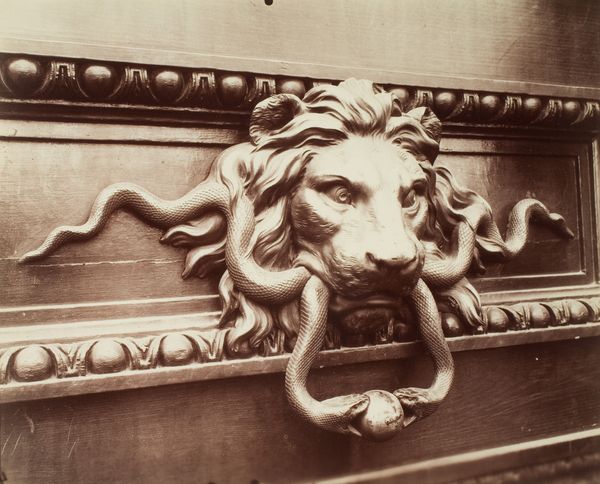 Eugène Atget made this photograph, "Fontaine, rue Garancière", using the albumen silver print process. The image immediately strikes you with its stark composition, dominated by the grotesque mask of a fountain. Atget's use of sepia tones softens the harshness of the subject, giving the photograph a melancholic, almost dreamlike quality. The texture is palpable; you can almost feel the rough stone and the aged patina of the sculpture. Atget was not merely documenting; he was engaging in a dialogue with the city's architectural and cultural heritage. This image challenges fixed meanings, presenting an object of public utility, a fountain, as a piece of unsettling art. The fountain is no longer just a functional object but a piece of history, imbued with the passage of time and the weight of cultural memory. Atget uses formalism to draw the viewer into a deeper contemplation of the photograph's subject and its broader cultural context.