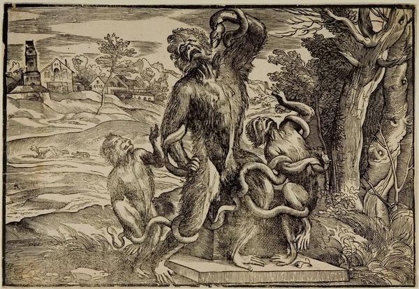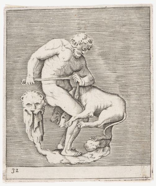 This is Antonio Tempesta’s "Sater," made in the late 16th or early 17th century, through the technique of engraving. Look closely, and you'll notice the intricate network of lines that bring this mythological creature to life. The density and direction of these lines create areas of shading and highlight, defining the form and texture of the satyr’s body, from its coarse hair to muscular limbs. Engraving is an intensive method that requires considerable skill and precision. The artist uses a tool called a burin to manually carve lines into a metal plate, which is then inked and printed. This labor-intensive process meant that prints were relatively expensive. Prints like this one circulated widely, playing a crucial role in disseminating knowledge of classical mythology and artistic styles across Europe. Tempesta's "Sater" speaks to the growing market for art and visual culture, and the skilled labor that underpinned it. Ultimately, understanding the work involved in the production of prints like this, allows us to appreciate the cultural and economic context in which they were created.