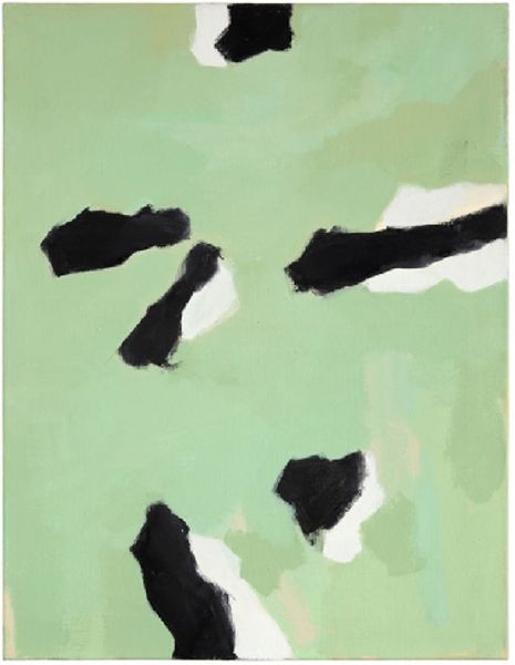 Editor: Right, so next up we have "Wilde VI," created by Melissa Meyer in 1998, using acrylic paint. I’m immediately struck by the strong contrast, these stark black shapes against this very whimsical blue… it’s kind of playful, but also feels very grounded. What jumps out at you when you look at this piece? Curator: You know, I'm glad you picked up on that tension. It’s not quite a head-on collision, more like a…flirty argument between chaos and order, don’t you think? The blacks are bold, sure, anchoring themselves, but they don't quite dominate. There’s a dance happening with that periwinkle blue. What do you make of those sweeping lines? They remind me of calligraphy, almost. Like Meyer is writing with color. Editor: That's interesting! Calligraphy… I hadn't thought about that. I was so focused on the abstract shapes, I didn’t really see that potential movement and rhythm you mentioned. It almost looks like she's doodling in a really sophisticated way. Curator: Exactly! It's controlled spontaneity. Meyer gives us this almost pop-art boldness while also hinting at something deeply personal, almost confessional. A visual journal entry perhaps, but instead of words, she lets color and shape spill out. It feels intensely *her*, don't you think? Makes you wonder what she was thinking, what she was feeling that day in '98. I wonder...do those blue shapes remind you of anything in particular? Editor: I see them as dancing or weaving! But after what you just said, I wonder what was happening in the world around 1998 that she was reacting to. Curator: Oh! And *that* is how art can take us further in the meaning-making process. Editor: So much more to discover now! Thank you! Curator: The pleasure was all mine, keep those beautiful thoughts brewing!