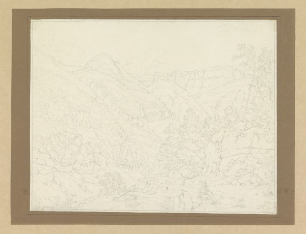 'Landschap in de Eifel', or 'Landscape in the Eifel', was drafted in pencil by Ferdinand Hart Nibbrig, although we don't know when it was made. Nibbrig was a Dutch post-impressionist painter. The Eifel region, with its rolling hills and agricultural lands, wasn't just a visual subject for Nibbrig; it was a space laden with cultural and economic significance. Agriculture and rural life are central to this image, which prompts us to consider how labor and the land are represented. The ordered rows suggest a dialogue between human intervention and the natural landscape. Nibbrig, coming from a well-to-do family, often depicted rural scenes that romanticized the agrarian lifestyle. This drawing invites reflection on whose stories are being told in landscape art, and how these narratives either challenge or reinforce our perceptions of land, labor, and identity.