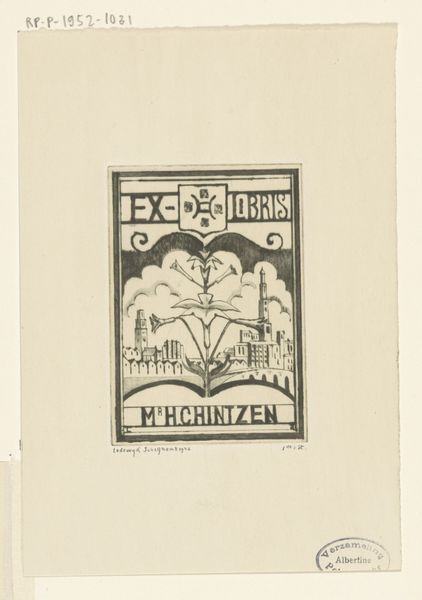 This is Hendrik Petrus Berlage’s advertisement design for the Algemeene Maatschappij van Levensverzekering en Lijfrente in Amsterdam. Executed in black ink, its strong, symmetrical composition conveys a sense of stability and order. Berlage employs dense, stylized ornamentation typical of Art Nouveau. Note the way he frames the central text with decorative borders featuring organic, plant-like motifs. These elements create a visual rhythm, guiding the viewer's eye through the informational hierarchy. The Amsterdam coat of arms is framed with decorative flourishes and positioned between the branch offices. Berlage was a key figure in Dutch modernism, advocating for functional design rooted in rational principles. This advertisement embodies this ethos, blending decorative aesthetics with clear communication. The structural clarity and the use of repeating patterns invite a semiotic reading, where each element functions as a signifier within the larger framework of the advertisement.