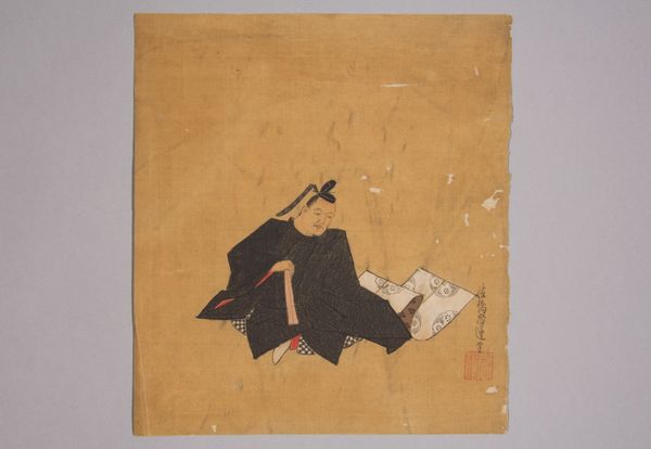 Kano Shōun created this ink and color on paper artwork, ‘Immortal Poet’, likely in the late 17th century. The composition here is striking in its simplicity and use of negative space. We see a figure, rendered with economical brushstrokes, seated against a plain backdrop. The poet's robes are a dark mass, a stark contrast to the light, almost ethereal quality of the paper. Shōun masterfully plays with the tension between form and void, inviting us to contemplate the essence of the figure. The poet's face, though small, is rendered with enough detail to convey a sense of quiet contemplation. What's most intriguing is how Shōun challenges traditional portraiture. Instead of aiming for realistic representation, he reduces the figure to its most essential elements. In doing so, Shōun invites us to look beyond the surface, to consider the inner world of the poet. The focus is not on physical appearance but rather on capturing a state of mind, a moment of profound introspection. Through this interplay of form and content, Shōun’s work transcends mere representation, offering a deeper meditation on creativity.