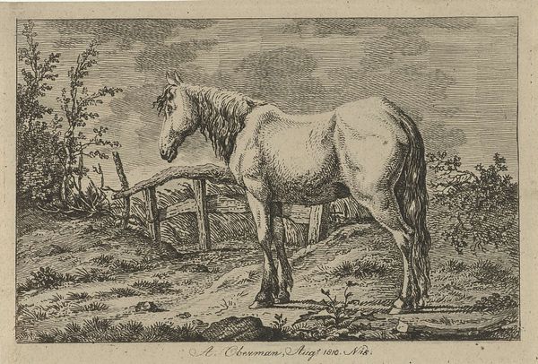 Editor: Here we have "Gebauers visitkort," a print made sometime between 1818 and 1822 by Christian David Gebauer. It looks like an etching or engraving. What strikes me most is how playful and informal it feels, like a glimpse into the artist's personal sketchbook. What do you make of it? Curator: Ah, yes! It's practically whispering secrets from Gebauer’s world, isn't it? You get the sense he just captured a fleeting moment, a whim. Look at how he uses that delicate hatching to create light and shadow. Almost like catching sunshine in a teacup. The composition, it’s like a little stage, and each animal is an actor. Do you see a narrative here, perhaps a pastoral anecdote, or just… being? Editor: I think it's fascinating how much detail he manages to pack into such a small space. But it almost feels unfinished, like a preparatory sketch rather than a final work. Curator: Precisely! And there’s a lovely tension there. Think of it less as incomplete, and more as potential energy. What narrative would you, as the viewer, bring to it? A question, rather than a statement, is always so much more provocative, don't you think? Plus, the toned paper provides a warmth, softening the lines and giving the scene a dreamlike quality. Makes you wonder what kind of world Gebauer inhabited, doesn’t it? Editor: It definitely sparks the imagination! Seeing it as a question instead of a sketch is a great way to frame it. Curator: It also helps place Gebauer within his artistic milieu, that time when artists felt they should not be constrained by academic dogma, which may lead them towards finding a different kind of Truth. In a way it embodies this sense of romantic-era quest. Makes one consider that his truth may also lie in your experience with his images, even these years later. What could be more special? Editor: I never thought about it that way. I’ll be spending a lot more time considering such works in the future. Thanks. Curator: My absolute pleasure! It has sparked my enthusiasm too, I’ll be looking for more whimsical "sketches" now to further appreciate them.