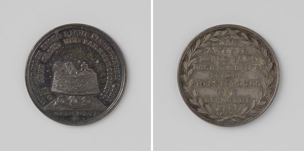 This silver medal by Daniel Friedrich Loos commemorates the capture of Paris, honoring the Duke of Wellington and Blucher. Its circular form, a traditional shape for medals, immediately suggests notions of completeness and cyclical time, reflecting historical events. The medal's composition is divided into two distinct sides. One side features the effigies of Wellington and Blucher, encircled by a laurel wreath. The other side bears an inscription detailing the event. This division underscores a semiotic structure: image versus text, representation versus declaration. The incised lines create both the portraits and the letters, merging artistic expression and symbolic communication. The material itself, silver, lends a sense of gravity and enduring value. Its cool tone and metallic sheen add to the medal's solemnity. The medal challenges the traditional concept of a static artwork; it is meant to be held, carried, and circulated, thus becoming a mobile signifier of historical memory and political power. This mobility suggests the fluidity of meaning.