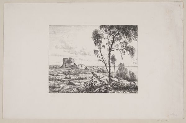 Axel Theodor Kittendorff created this print of Hammershus, a castle ruin, using engraving techniques. The crumbling stone fortress dominates the landscape, a stoic witness to time's relentless passage. The ruin, a powerful symbol, echoes across centuries. We see it in Piranesi's etchings of Roman ruins, in Romantic paintings that capture the sublime decay of once-great structures. These motifs invoke a sense of nostalgia and the transience of human achievement, of civilizations fading into memory. The ruin is a testament to destruction and rebirth, resonating with the Freudian concept of the return of the repressed, and engaging viewers on a deep, subconscious level. Notice how Kittendorff juxtaposes the ruin with the verdant growth of the birch tree. This motif, a symbol of resilience and hope, invites reflection on the cyclical nature of history. Like the mythological phoenix, rising from the ashes, the motif of ruins underscores the endless progression of decay and regeneration throughout history.