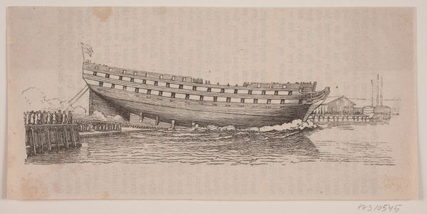 Curator: This lovely woodblock print, entitled "The Sea Route off Kazusa Province," was created by Hokumyō sometime between 1834 and 1837. It's currently held here at the Minneapolis Institute of Art. What are your first impressions? Editor: There's an undeniable serenity here. The delicate rendering of the waves, the muted tones, and the subtle variations in color – it evokes a quiet stillness despite depicting a potentially turbulent subject matter like the sea. Curator: Absolutely. It's essential to situate Hokumyō's work within the broader context of ukiyo-e art during the Edo period. Consider the socio-political climate: a rigid class system, burgeoning urban centers, and the rise of a merchant class seeking pleasure and escapism. Hokumyō, and artists like him, were not just depicting landscapes; they were offering a visual narrative that resonated with contemporary audiences longing for connection to nature and a simpler life, one idealized and certainly removed from the toils of labor on similar vessels. Editor: Speaking of labor, notice the meticulous construction of the ship, every plank carefully delineated. It strikes me how much emphasis is placed on the vessel itself as an object of production and transport, and thus highlighting how intertwined nature and human craft become. Curator: Precisely! Ukiyo-e prints, like this one, were mass-produced, reaching a wide audience, democratizing art and spreading idealized images and narratives throughout Japanese society. The prints would have been considered very low brow compared to the scrolls commissioned by wealthy individuals or temples, yet it tells us so much about the aspirations and cultural trends of the time. It allowed artists to capture fleeting moments, transforming them into enduring representations of beauty, resilience, and human interaction with the natural world. Editor: Looking at the sails, I’m reminded of the laborious processes required to both navigate these vessels, and manufacture the materials required for passage, not to mention the environmental materials used for dying sails and painting the ship itself. Curator: I agree, reflecting on how artworks like Hokumyō's embody not just artistic expression but also complex intersections of material culture, social dynamics, and individual identities truly enhances our understanding and appreciation. Editor: It makes you consider how all this comes together. To examine closely both the processes of the laborers that crossed that route but also the process required of Hokumyō and his contributors. It creates another bridge across labor. Curator: It does indeed, what a rich layered commentary! Editor: Exactly.