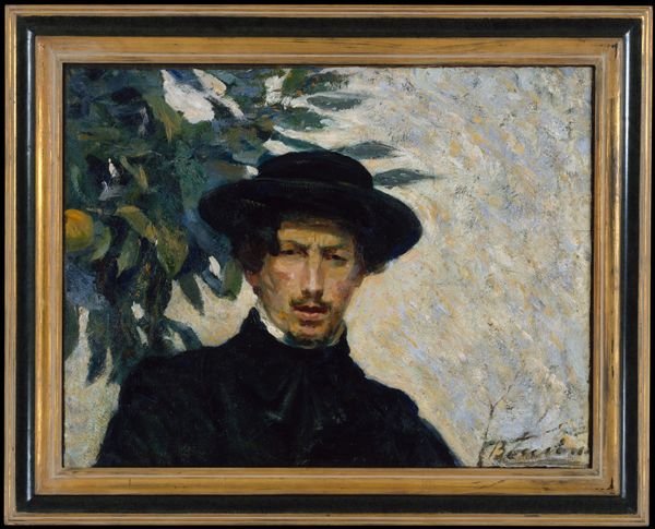 Edgar Degas painted this small self-portrait on canvas at an unknown date. He was a man who inhabited the privileged spaces of 19th-century Parisian society. Degas presents himself with a certain nonchalance. The soft hat and loosely knotted scarf suggest a casualness, yet the intensity of his gaze hints at a more complex interiority. What does it mean for a man of his class to present himself in this way? Is it an attempt to democratize the self-portrait, or is it another way of performing a certain kind of masculinity? The portrait complicates the notion of the male gaze, as Degas turns his own gaze inward. The ambiguity of the image invites us to consider the artist’s own understanding of his identity, his place in society, and his role as an observer. The dark, muted tones evoke a sense of introspection. It is as if Degas is not just showing us his face, but inviting us to witness a moment of self-reflection.