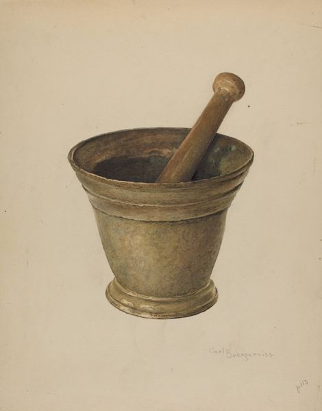 Anne Colman’s ‘Mortar and Pestle’ is a drawing of a wooden vessel, and you know, I’m always interested in how an artist approaches a subject so directly. There’s something about the way Colman uses the color in such a light, transparent way, almost like watercolor but with a very fine, controlled line. Looking closely, you can see these tiny, deliberate marks that build up the form, giving the wood a sense of depth and roundness. The texture is implied through the shading, making you feel like you could reach out and touch the smooth surface of the wood, the way the light catches the edges. It reminds me a little of Agnes Martin’s quiet attention to detail, that focus on the subtle variations within a limited palette. Both artists share a similar interest in artmaking as a process, embracing ambiguity, and multiple interpretations.