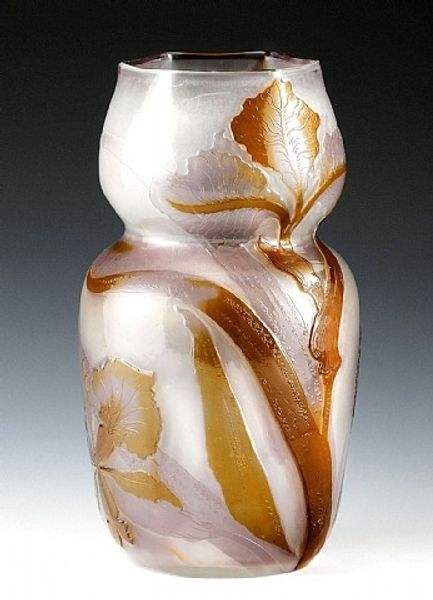This small vase was made by Louis Comfort Tiffany, using molten glass. Tiffany was fascinated by the endless possibilities of glass as a medium. He saw himself as both an artist and an industrialist, and perfected a method for creating what he called "favrile" glass. This involved mixing different colors of molten glass, and manipulating them while hot. If you look closely, you can see how the opaque yellows and blues swirl together to create a soft, almost dreamlike effect. The surface of the vase is textured and subtly iridescent. This effect wasn’t achieved with paint, but through metallic oxides added to the molten glass. Pieces like this reflect Tiffany’s belief in the value of skilled handcraftsmanship, which was very much in contrast with the rise of mass-produced goods at the time. So, while Tiffany was a savvy businessman, he also championed the idea that beautiful, handmade objects could enrich everyday life. It’s a great example of how art and industry can come together.