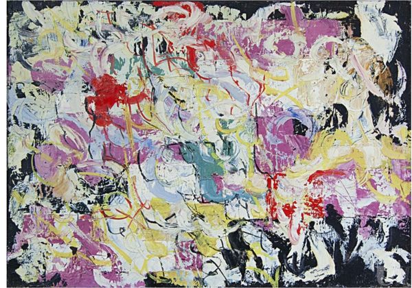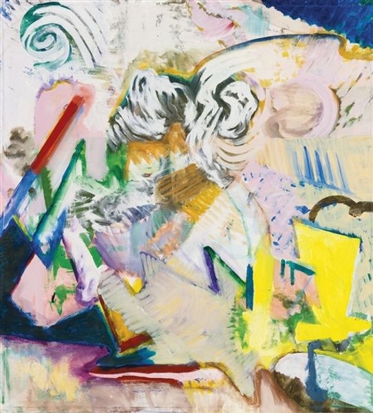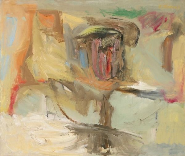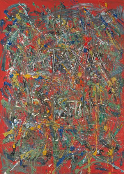 Editor: We're looking at "The Gap II" by Gary Wragg, created in 1990 with mixed media, including acrylic. I find the chaotic energy captivating, like a visual representation of pure emotion, yet the longer I look, I also sense compositional structures. What catches your eye? Curator: The most immediate aspect is the application of paint itself. Notice the vigorous brushstrokes, the layering, and the almost sculptural impasto in certain areas. Wragg is clearly interested in the materiality of paint. Where do you see relationships between form and color? Editor: Well, the blues and greens seem to coalesce and suggest volume, while the brighter pinks and yellows act as disruptive accents. Is it possible to reconcile these divergent chromatic groups to each other formally? Curator: Precisely. The canvas is densely populated, but it avoids total dissolution due to the chromatic arrangement and structural considerations. Look at how he creates a sense of depth not through traditional perspective but through overlapping planes and the relative intensity of hues. The gestural marks, even in their apparent randomness, construct a non-illusory but highly active field. Do you observe this energetic activity in the center or around the canvas’ borders? Editor: I see a dynamic interplay across the whole picture plane. It doesn't seem hierarchical; no one area dominates. It's like the entire surface is charged with equal energy. Curator: That equal distribution of energy, achieved through the artist’s deliberate mark-making, creates what we describe as “all-over composition” reminiscent of the later works by Jackson Pollock. These abstract expressionist traits become amplified with its active strokes. Do you agree that each singular stroke should be judged formally for the effects of creating this unified picture plane? Editor: Absolutely, seeing it like that helps me move beyond my initial impression to consider Wragg’s formal decisions and how he orchestrated the overall viewing experience. Curator: Indeed. Close scrutiny of form generates insight that would be impossible if we ignore the materiality. Now, looking at it for the last time, how might this appreciation for color and composition enhance the experience for future audiences? Editor: By emphasizing the interplay of structure and color, others can connect with the visual architecture underlying the abstraction, understanding it as more than just a burst of feeling. It becomes about carefully calibrated formal relationships.
